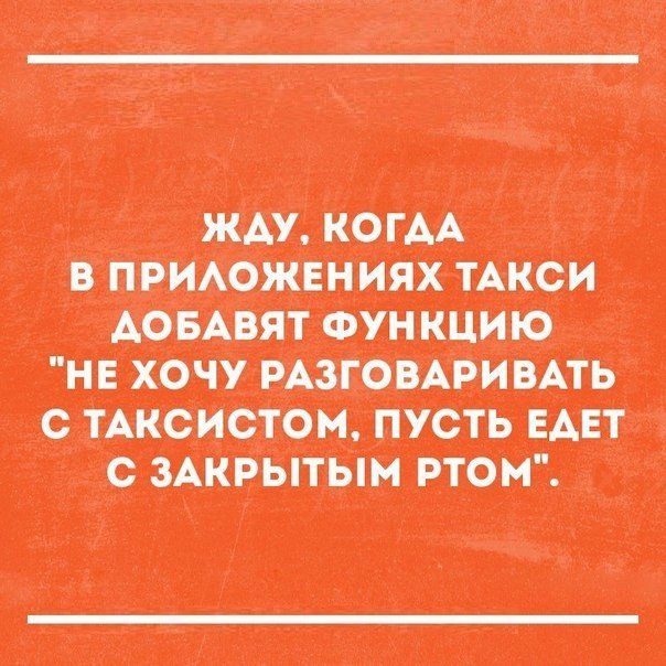 Не согласен про таксиста. Иной раз хочется заткнуть пасть клиенту и выставить на ближайшем перекрестке!