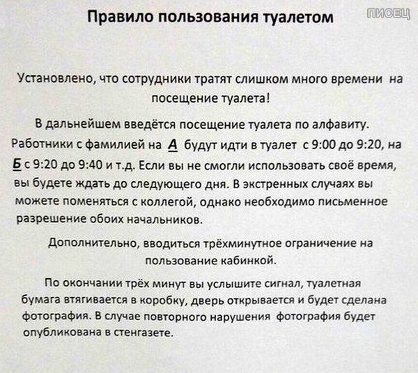Последнее — шедевр! Я думала у меня работа адская, я ошибалась, да у меня — креатура, в туалет я могу ходить, когда захочу!