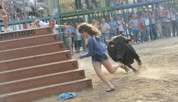 Дай Бог девушке убежать от быка!