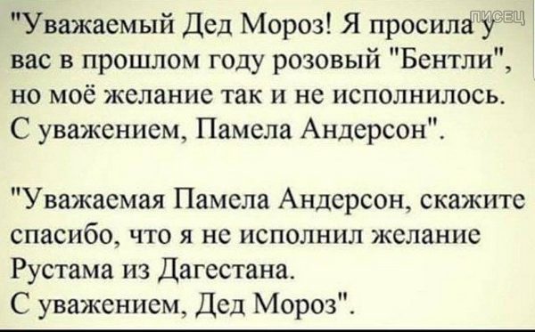 Сначала хохотала от желания Рустама из Дагестана… потом ещё много чего понравилось. Спасибо, Юлька, что заставляешь улыбаться! Рада, что когда-то ты пригласила меня на сайт. Счастья тебе в новом году и исполнения всего задуманного!