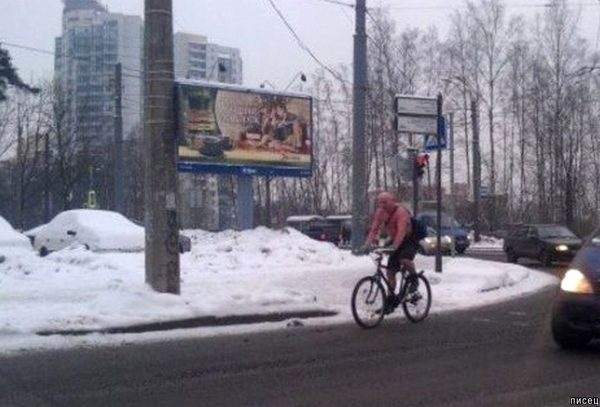 Дай Бог всем здоровья! А на велосипеде зимой очень не безопасно и тормозов почти нет и на косогорах с поворотами заносит.