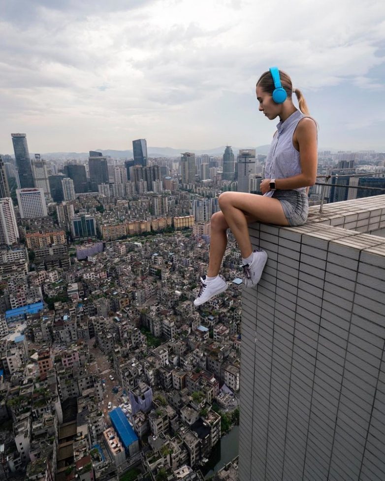 Знакомьтесь, эта 24-летняя москвичка Ангелина Николау уже несколько лет активно увлекается руфингом. Она путешествует по странам, где забирается на крыши небоскребов вместе со своим бойфрендом и показывает в Инстаграме эти эффектные снимки.