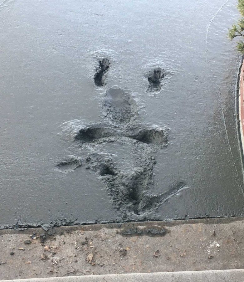 это ребенок в цемент упал что ли, вроде не животное