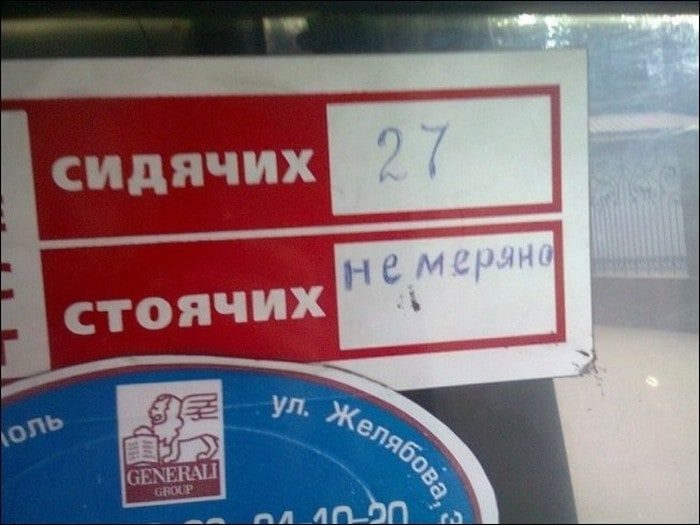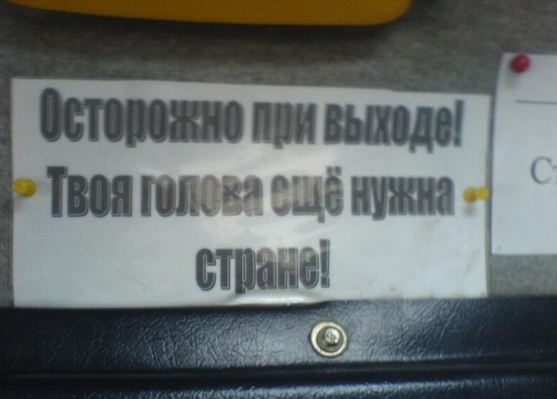 Так же встречал в газелях такие шедевры как: «По салону не бегать», " Книга жалоб и предложений находится… в следующей маршрутке". В трамвае видел такую замечательную надпись " Место кондуктора не занимать. Сам кондуктором станешь!"