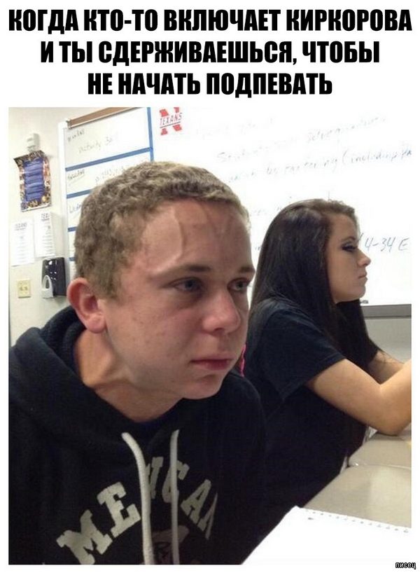 Там, где он сдерживается, чтобы не подпеть Киркорову… мне кажется, он сдерживается совсем по другой причине — он оооочень хочет в туалет и уже даже не по-маленькому )))
