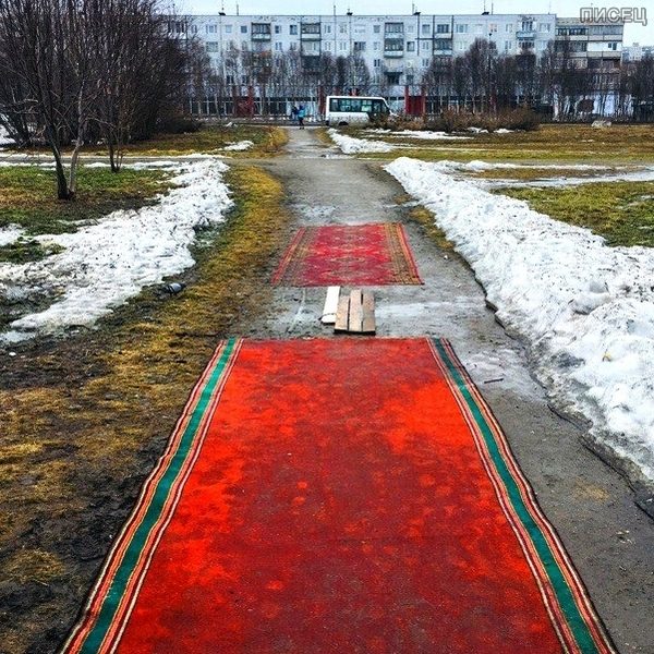 Писсуары из вёдер,- очень креативностью и самобытно! Мент заставляет отжиматься нарушителя- тоже +100! Остальное печально, конечно. Даже прикольный ковер на дороге.