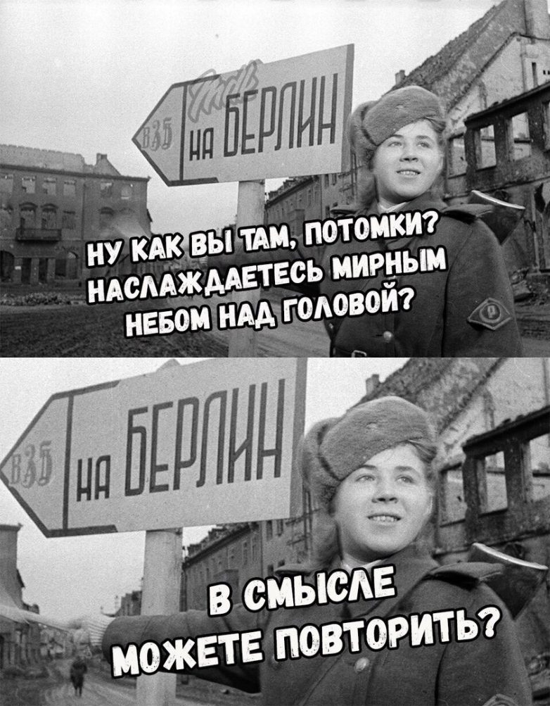 Друзья, поздравляю вас с главным праздником в странах бывшего Советского Союза. Давайте вместе улыбнемся в этот великий день и вспомним своих боевых предков!