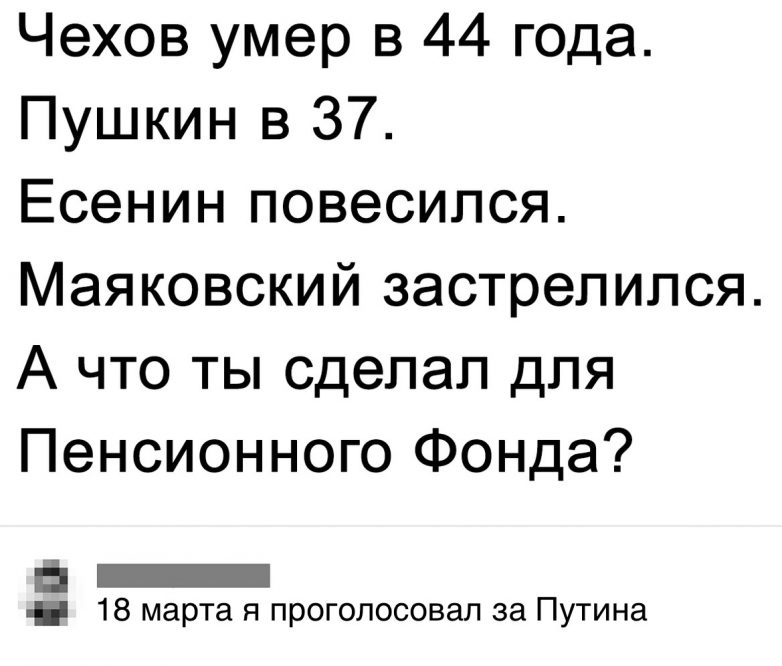 Да, Чехов, Пушкин, Есенин, Маяковский — просто молодцы, столько сэкономили государству..!…… Про серийных убийц тоже неплохо .....!