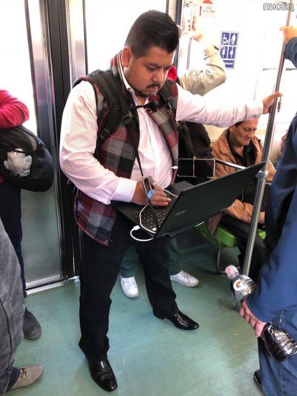 А мне чувак с ноутом понравился — хороший вариант эффективно использовать свое время) Ведь поездка в метро/пригородном поезде может занимать три часа в оба конца, которые лучше провести с пользой
