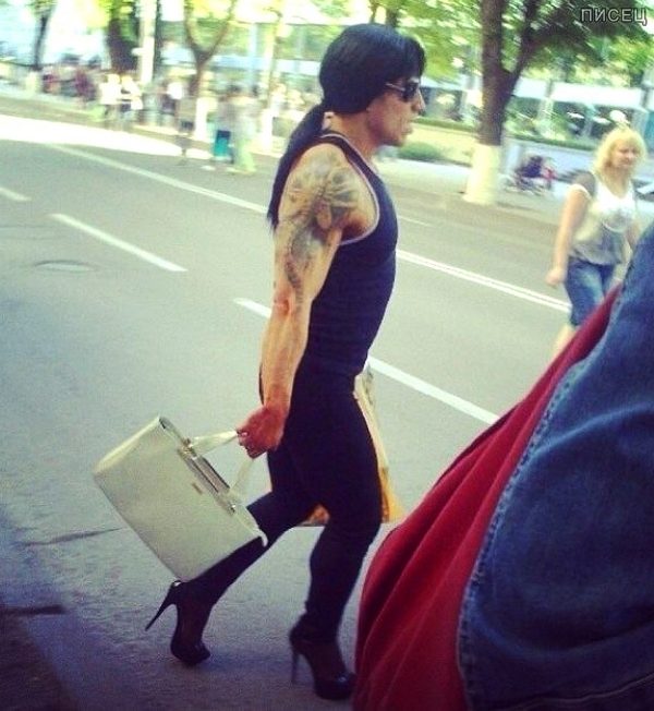 Я понимаю, что мужчинам обидно за то, что отжали женщины у них многие детали мужского гардероба. Но, нам это всё идёт, а вот женская одежда мужчинам как мулу седло