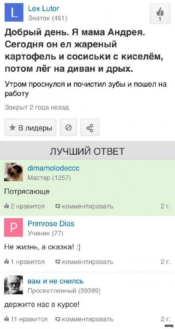 Убойные приколы с сайта «Ответы Mail.ru». Это полный Писец!