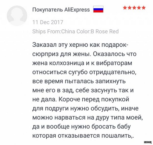 Последний отзыв — улёт, только ради него на «Али-экспресс» подпишусь ))))