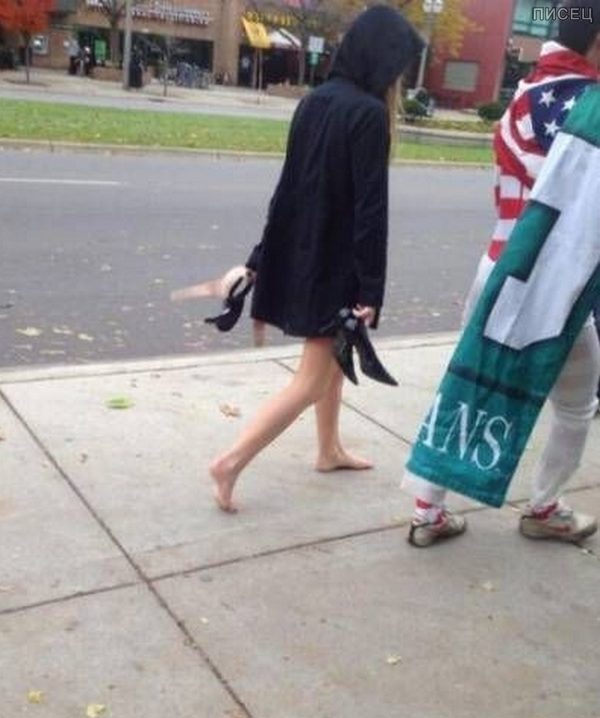 В английском языке есть выражение «walk of shame», что переводится как «тропа позора», и им обычно называют утреннее возвращение домой девушек после убойных вечеринок. Хмельные, потрепанные, и как правило, одетые во что попало девушки привлекают к себе повышенное внимание окружающих. Именно на них и предлагаю вам посмотреть.