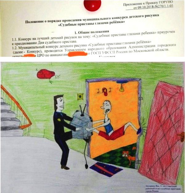 Детский рисунок про приставов нужно сделать фоновым на сайте госуслуг в разделе «Штрафы».