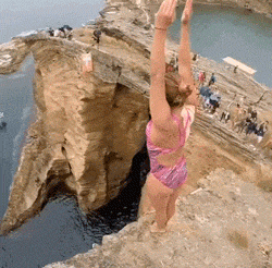 жесть… девушка прыгающая со скалы — хотя бы профи. просто место… опасное