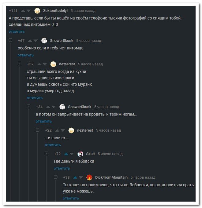 Когда ночью в кровать приходит умерший Мурзик и шепчет :)