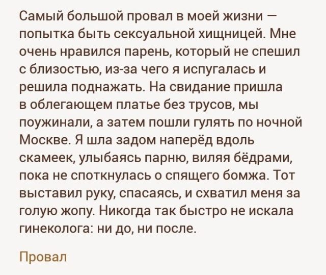 А девушке их предпоследнего рассказа надо бы ещё и проктологу показаться… Мало ли что ..!