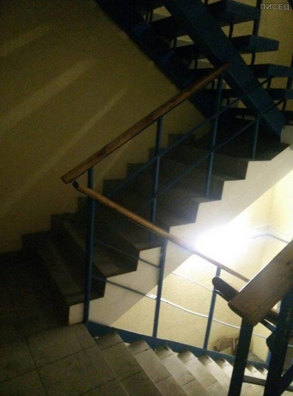 В окно это «Stairway to Heaven» что загадочного? А вот куда другие лестницы ведут — неизвестно… сам видел такие приколы, и лестницы, ведущие в бетон, и аварийные выходы, ведущие в глухой подвал,… в свете нынешней, после событий в Кемерово, всеобщей борьбы за противопожарную безопасность это очень печально