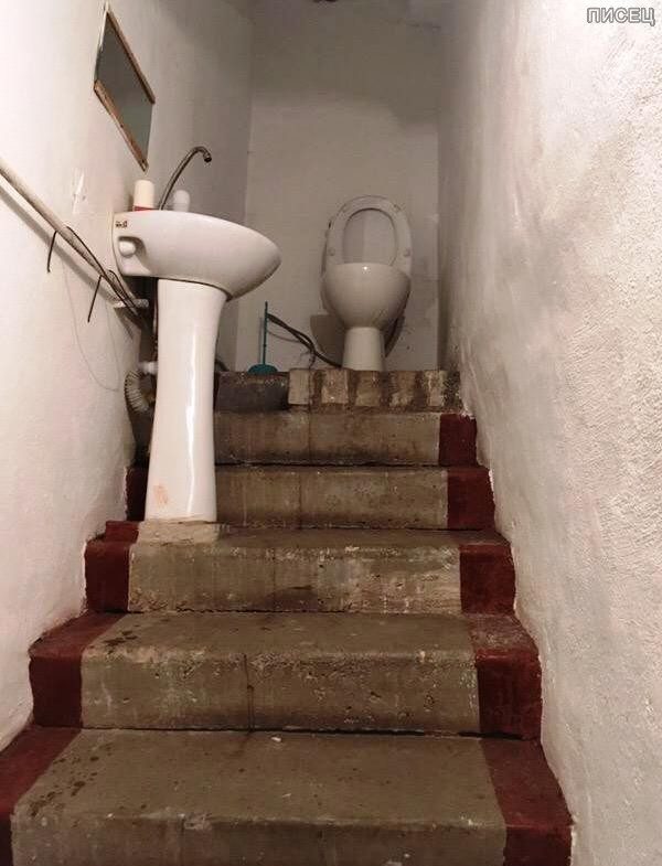 Загадочные туалеты, загадочные лестницы… Правда, одна -то, понятное дело, для самоубийц (у окна)… удобно ..!