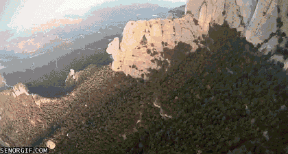 К сожалению, парень, прыгнувший в дыру высокогорной скалы, позднее разбился насмерть при исполнении подобного трюка…