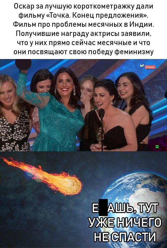 «Оскар» за про проблему месячных?))))))) Сейчас девки воодушевятся и снимут вторую часть, про климакс, наример))))))))))