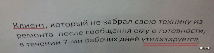 Суровые правила в сервисном центре:«клиент утилизируется»)))))))))