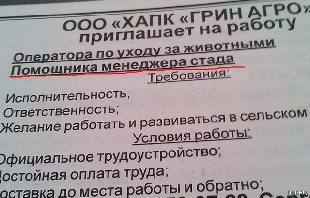 «Помощник менеджера стада»)))) Такой формулировкой можно на любое предприятие менеджеров на работу приглашать))))