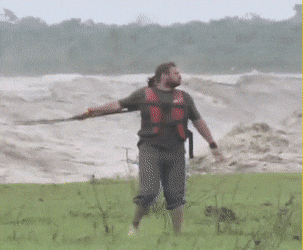 Он ногами гребет