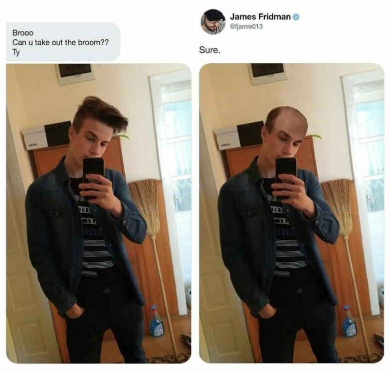 «Можешь убрать метлу?»