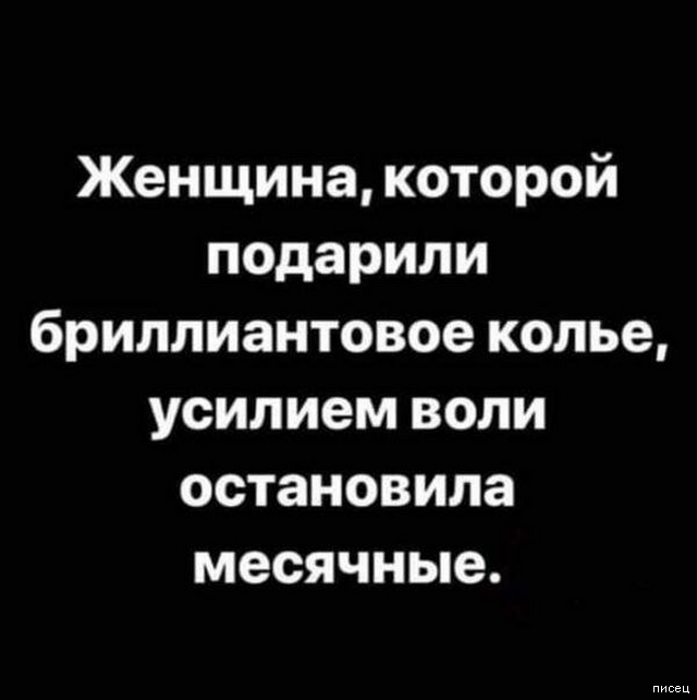 Месячные за колье усилием воли остановить — это ещё что! За виллу на берегу моря и частный самолёт у некоторых девственность появляется и целлюлит разглаживается)))))))))