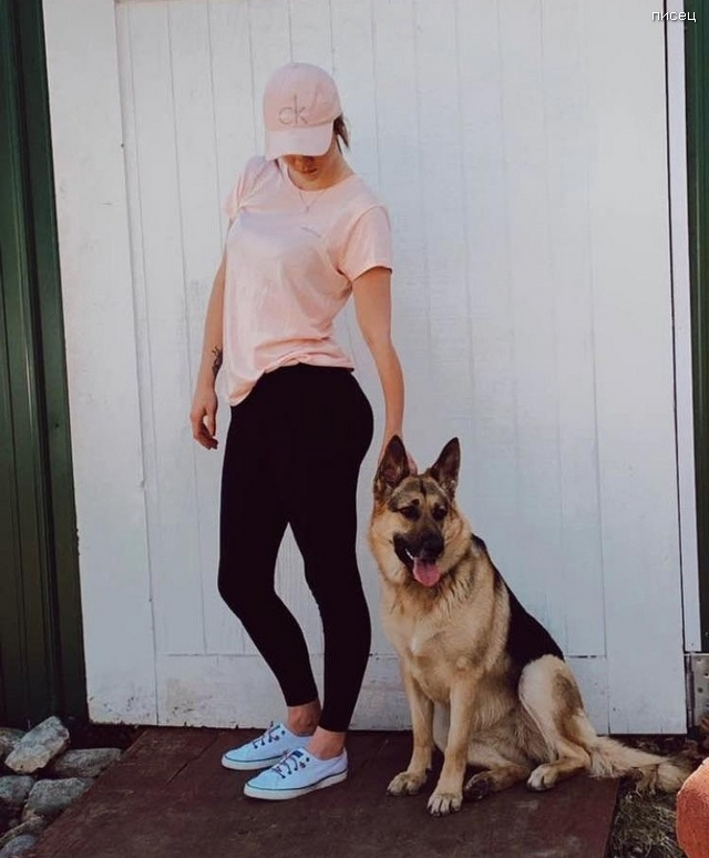 смотрите внимательнее на её руку и «пятую точку»