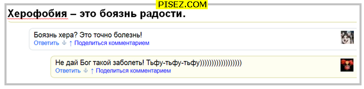 Друзья, напоминаю правила попадания ваших приколов в данную рубрику — сюда могут попасть комментарии не только с сайта Писец, но и с других дружественных сайтов, расположенных в разделе "САЙТЫ" в верхней части этой страницы (например, Назад в СССР, Всё для женщины, Кликабол и т.д.).Для этого вам нужно временно разместить картинку где-нибудь в интернете (соцсети, файлообменники и т.д.) и прислать мне ссылку на неё. Если там найдёте что-то прикольное в комментариях — сразу же присылайте мне. Вместе посмеёмся!