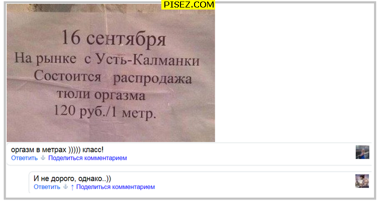 Новая серия эксклюзивной коллекции нашего сайта Pisez.com, посвящённая весёлым и находчивым комментариям, которые вы оставляете под постами. Возможно, кто-то из вас найдёт себя здесь. Креатив наших «народных приколистов» — просто зашкаливает. Смотрите и смейтесь на здоровье!