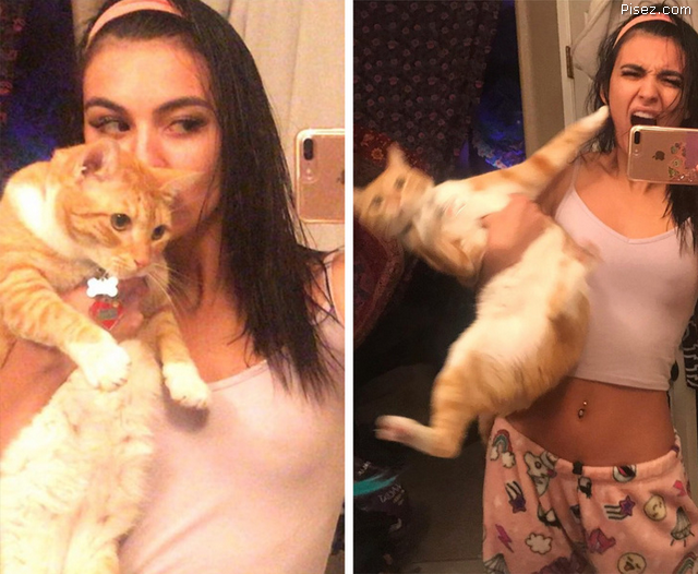 Котофейку, пытающегося выколупать глаза мадам, явно довели)))