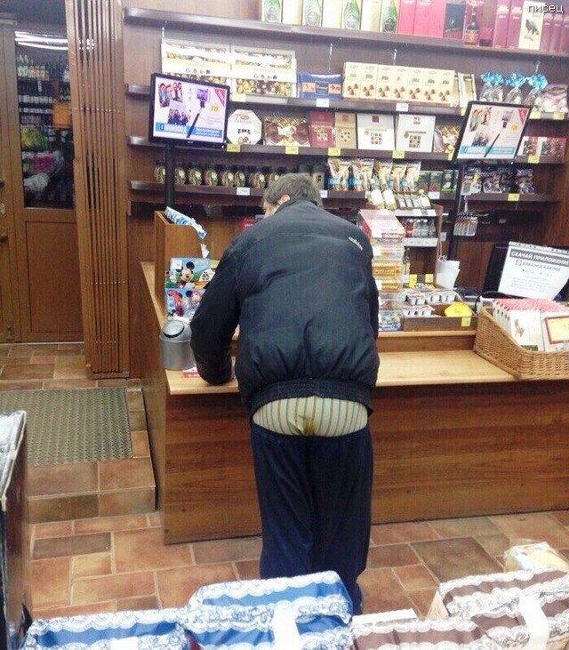 Он без штанов просто. Там в зеркале вид сзади))))