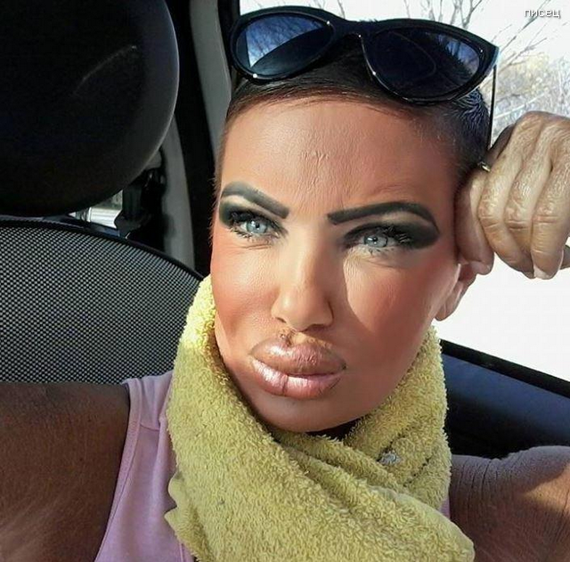 На 13 фото рожу автошпатлевкой замазали, а шкуру пересадили. Донором была престарелая слоновья срака.