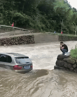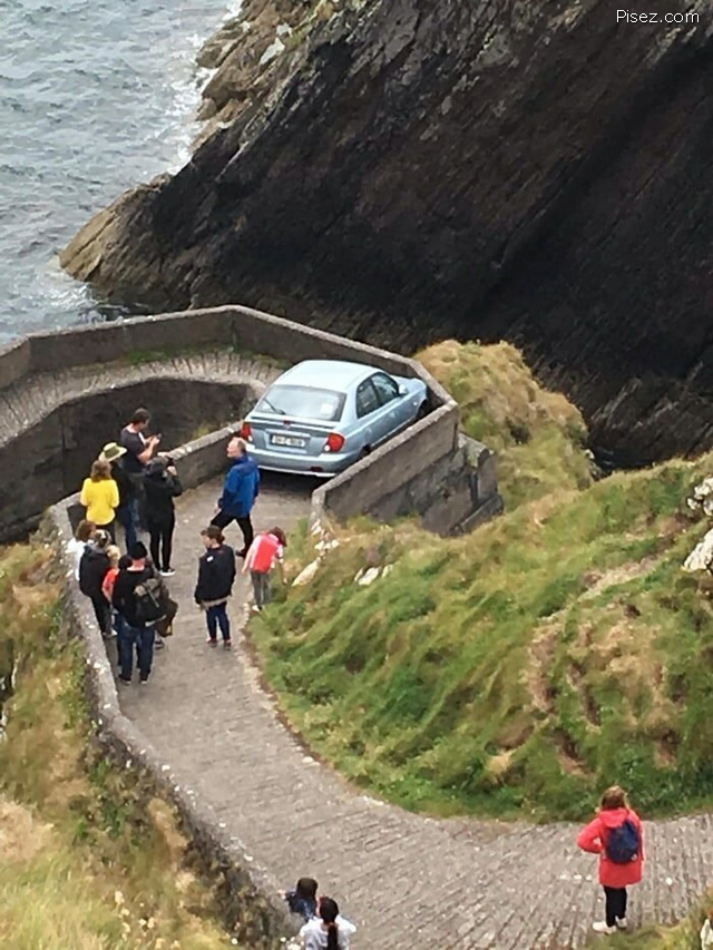 Синий пикап не то на ветках висит, не то летит?