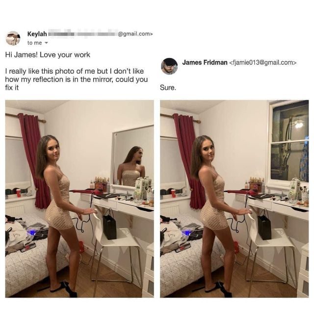 «Мне нравится фото, но не нравится моё отражение. Можешь исправить?»