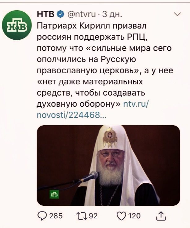 Кончились у церкви средства: все ра роскошь патриарших харей ушли