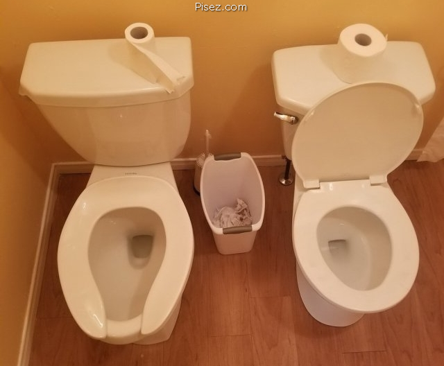 один унитаз для ж, другой для м(крышка с разрезом). тут только для знакомства романтического