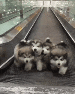 Интересно, бедная щень обгонит-таки эскалатор? Коты в машине-нечто просто.