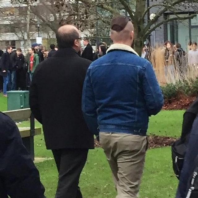 В футбольных воротах, похоже, премьер-министр Великобритании. Его трудно с кем-то спутать :)