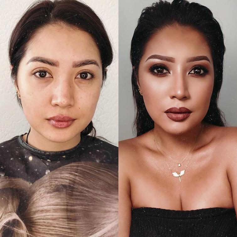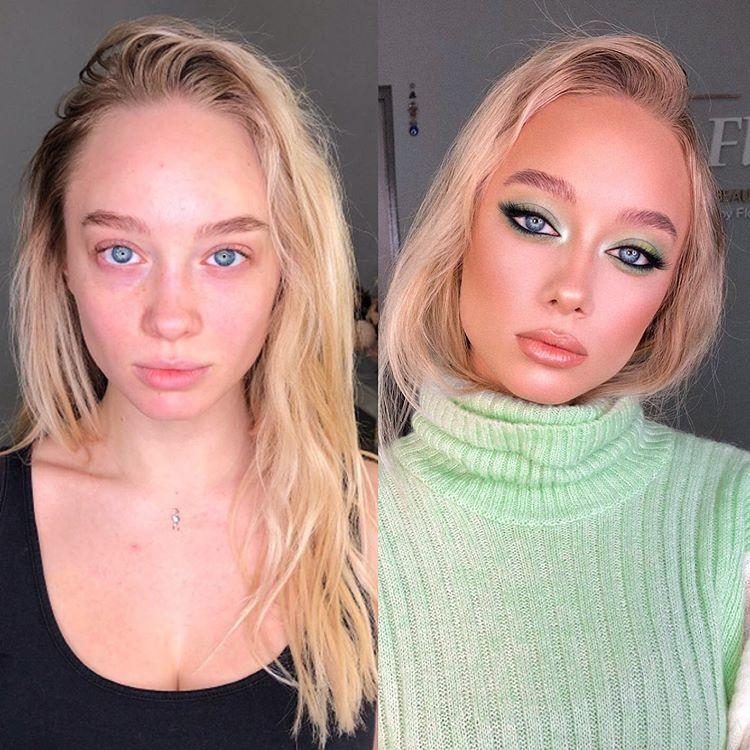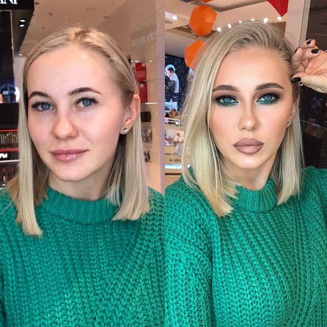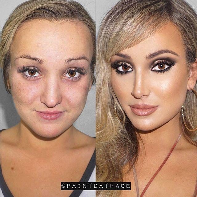У первой даже сиськи с макияжем подтянулись, у второй грудная клетка уже стала )))) Можно сказать, что макияж преобразуют всю женщину целиком )))) Или прощзе, — пи… ть — не мешки таскать