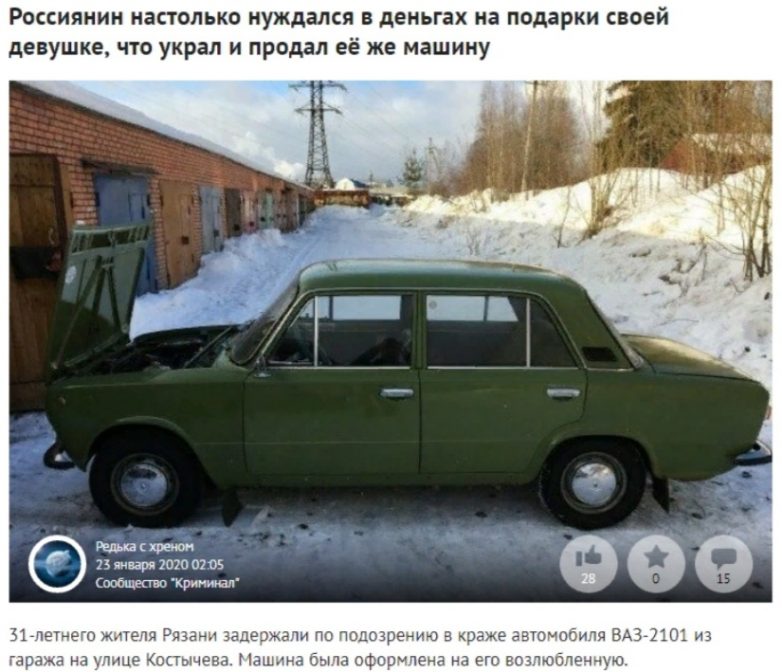 Угнал авто девушки чтобы купить ей подарки ))) А чО, таГ можно было? )))