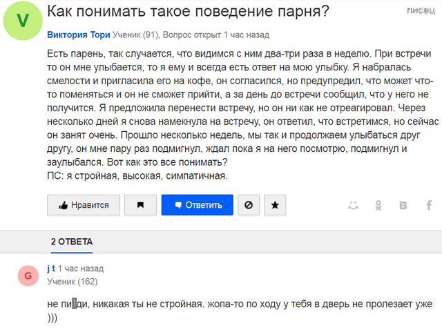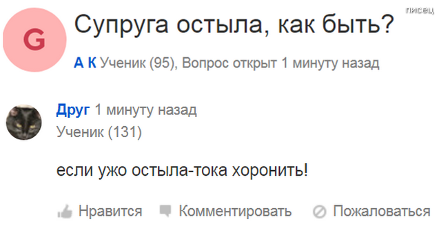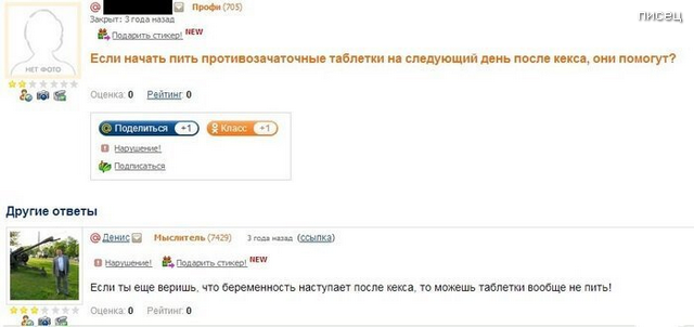 Есть такой шедевральный интернет-сервис «Ответы Mail.ru — поиск ответов на любой вопрос», где пользователи задают различные вопросы и получают на них ответы от других пользователей. И вот, что из этого получается…