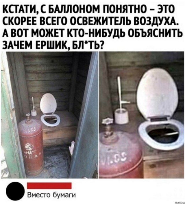 А ёршик вместо бумаги и 50-литровый освежитель — это очень круто для туалета