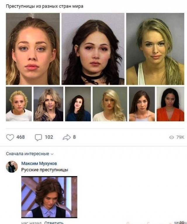 Кстати, а что весёлого в том, что получилась красивая выборка девушек-преступниц? Самых симпатичных из тюрем, наверное, взяли. Но в целом это же только грустно