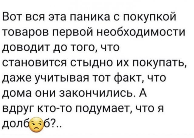 Какие кругом дeбилы, думал я, стоя в очереди за туалетной бумагой!!!)))