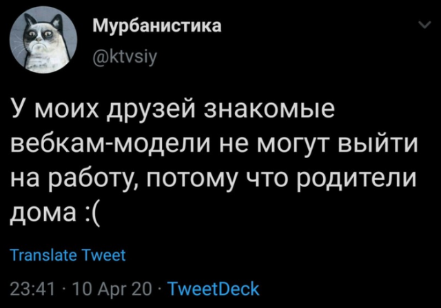 Да уж у представительниц древнейшей професси сейчас наступили нелёгкие времена, так как из-за пандемии COVID-2019 многие клиенты сидят дома в изоляции. Давайте посмотрим как на это отреагировали в социальных сетях.