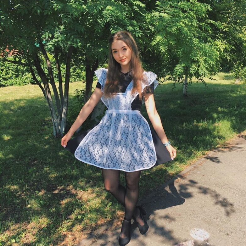 Девочка с снимка №3 зря выбрала чёрные колготки, телесные были бы лучше на этом фото. Странно смотрятся фартуки сильно короче, чем подол у платья. Наверное лучше одинаковой длины. И потом — отчего исключительно гипюровые фартуки? Раньше, когда я учился, у наших девочек разные-разные были! И это было КРАСИВО! (даже из белого атласа были), а уж фасоны, кружева — у каждой девочки было что-то своё, не как у других… Понравились в целом однако фото № 3,6,9,11,17,18,19. Фото №17 сделано при вечернем свете, матрица еле тянет — это отрицательно сказалось на качестве снимка
